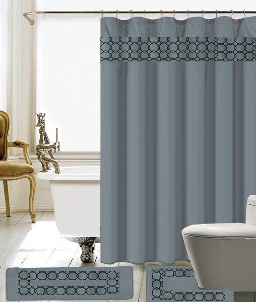 Give your bathroom that long awaited update, stylish new look with our 18 Pcs bathroom shower set. Each coordinating bath set features an easy to hang printed shower curtain,12 metal ball roller shower curtain hooks and matching bath and contour rugs to complete the look. An experience that classic to modern look and feel.